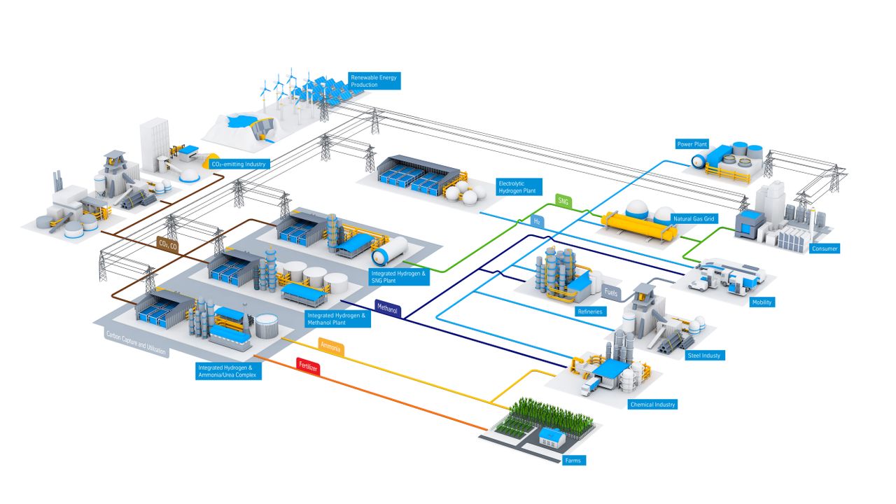 Portfolio von thyssenkrupp deckt gesamte Wertschöpfungsketten für grüne Chemikalien ab, von der Wasserelektrolyse bis zur nachhaltigen Herstellung von Ammoniak, Methanol, synthetischem Erdgas und Düngemitteln