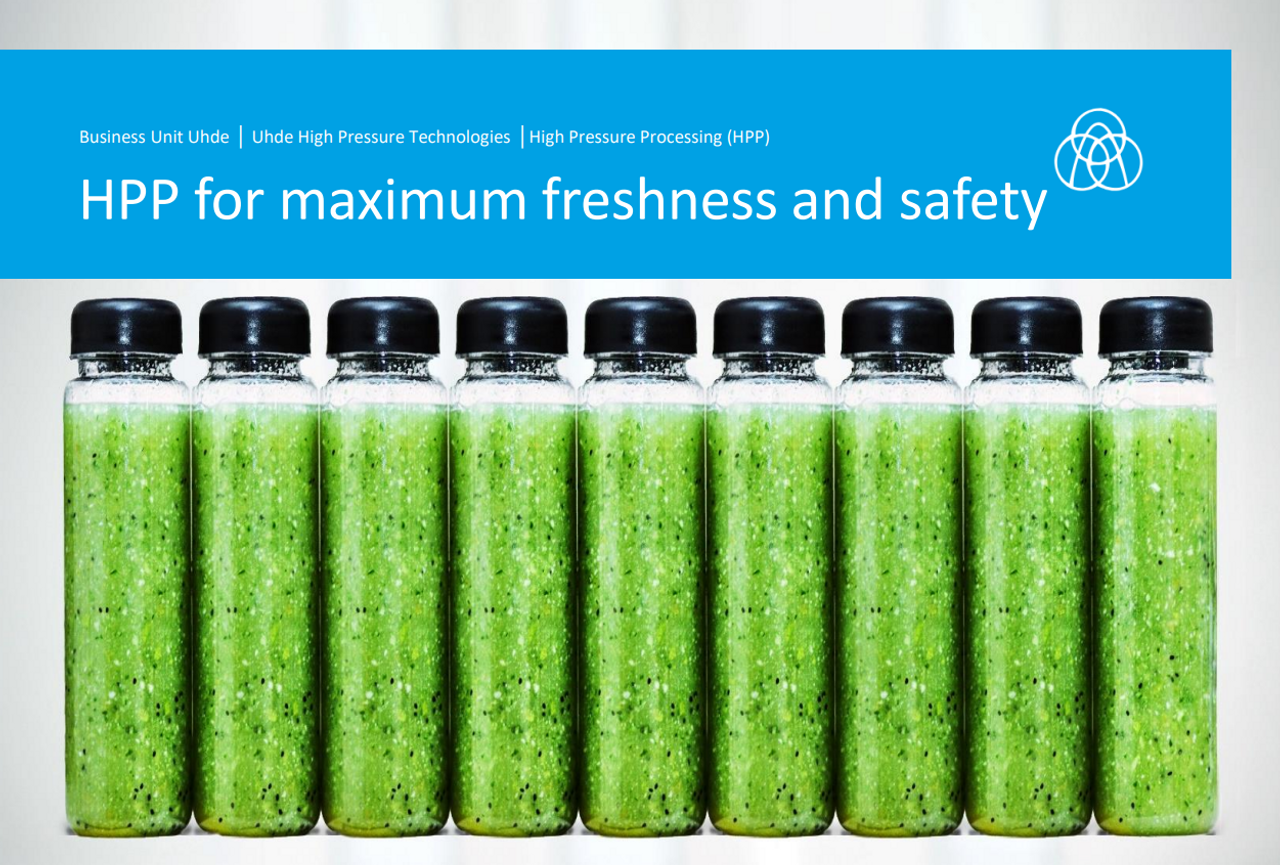 Die Hochdruckverarbeitung (HPP) von Säften und Fruchterzeugnissen inaktiviert effizient Krankheitserreger und verderbliche Mikroorganismen in frischen Getränken, ohne dass Hitze oder Zusatzstoffe eingesetzt werden. Das Ergebnis ist eine bis zu 10-mal längere Haltbarkeit bei gleichbleibend frischem Geschmack und leuchtenden Farben. Durch die Zufuhr subtiler Energie in die Produkte bleiben Vitamine, Mineralien, Antioxidantien, Aromen und Pigmente erhalten.