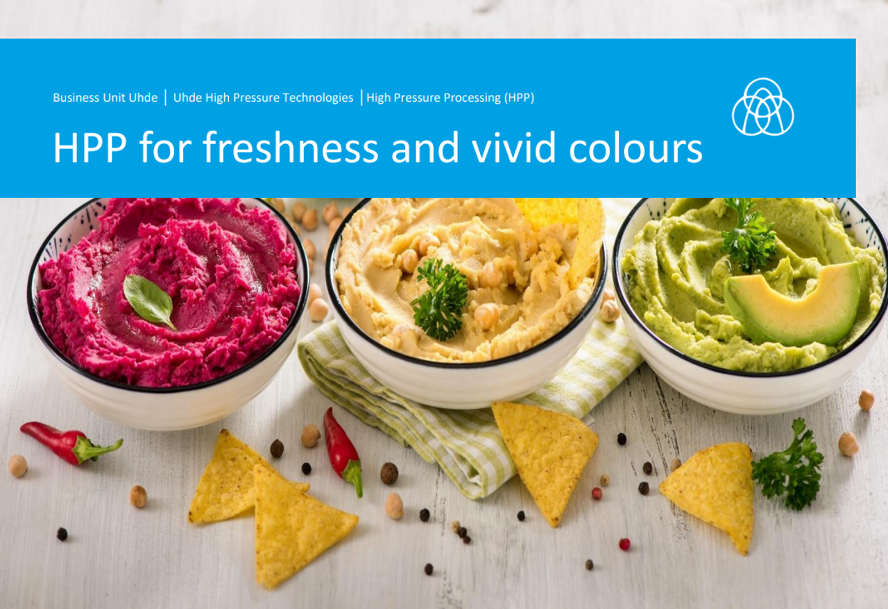 Das Hochdruckverfahren (HPP) inaktiviert effizient Krankheitserreger und verderbliche Mikroorganismen in frischen veganen Produkten wie Aufstrichen und Dips, Pürees oder Fruchtkompotten, ohne Hitze oder Zusatzstoffe zu verwenden. Die kurze nicht-thermische Behandlung führt zu einer drastischen Verlängerung der Haltbarkeit bei minimalem Verlust von Vitaminen, Mineralien, Antioxidantien, Aromen und Pigmenten.
