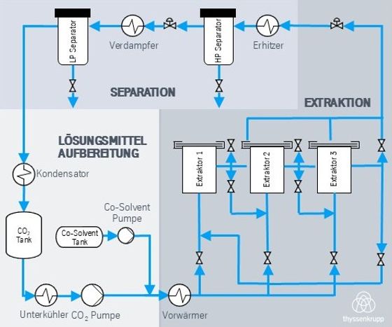 Die niedrige kritische Temperatur von 31 °C erlaubt eine schonende Behandlung von natürlichen Substanzen. Außerdem ist CO2 nicht nur gut verfügbar, sondern auch zu relativ niedrigen Preisen erhältlich.
